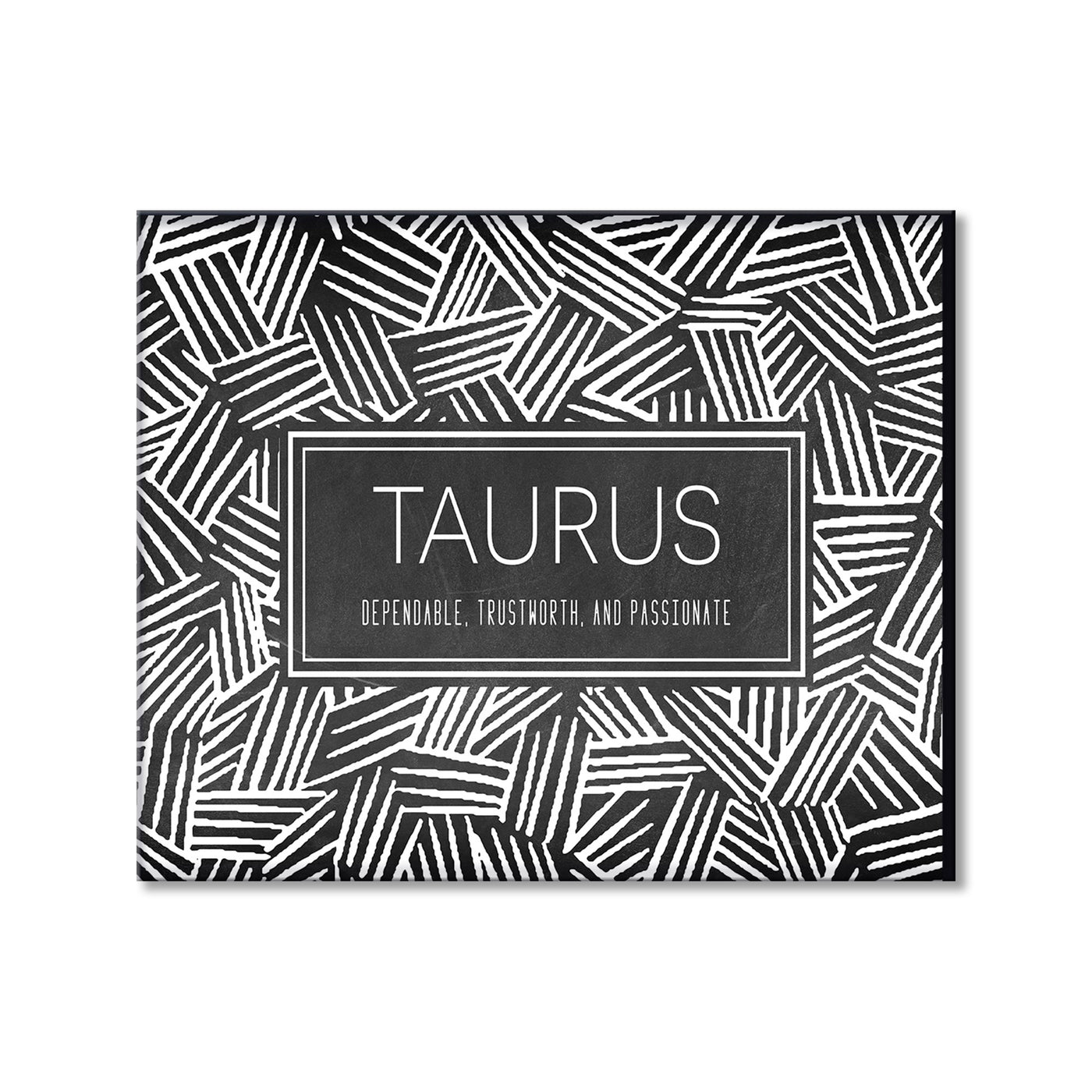 Enhance any contemporary space with this bold textual astrology titled, 'ChiChi Zodiac' by ChiChi Décor. The horizontal decorative artwork features a zodiac name with descriptive personality traits and a black and white pattern to complement any Décor.